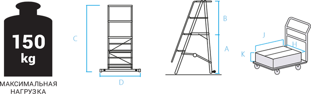 | Артикул | A, м | B, м | C, м | D, м | Размеры площадки, мм | H,м | J, м | K, м | Вес, кг |